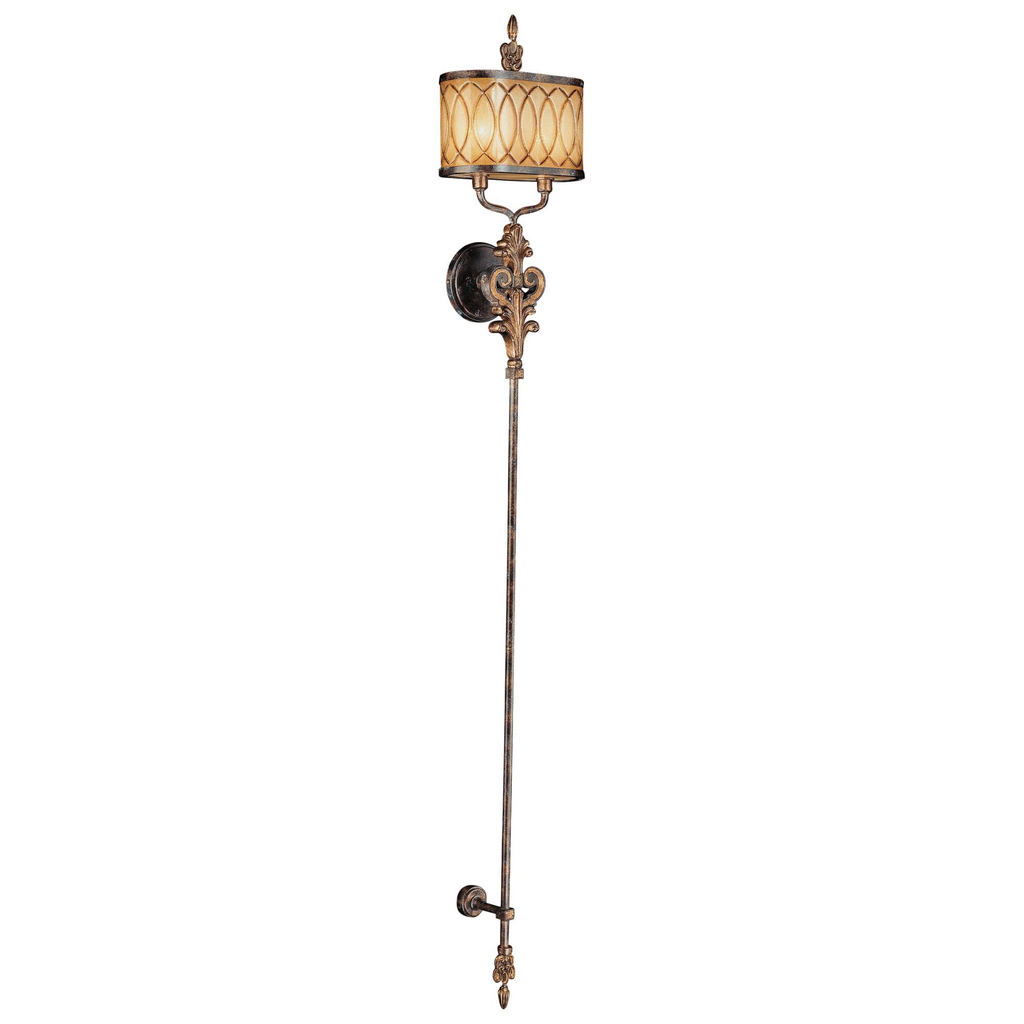 Two Light Torchiere Wall Sconce from the Terraza Villa Collection Features: Spumante Strato glass oval shade Designed to cast a soft ambient light over a wide area Can be mounted facing upward only Suitable for indoor dry locations Specifications: ADA: No Backplate Width: 5.13" Bulb Base: Medium (E26) Bulb Included: No Dimmable: No Energy Star: No Extension: 6.5" (measured from mounting surface to furthest protruding point on fixture) HCO: 17.5" (height from center of outlet) Height: 65.25" Number of Bulbs: 2 Product Weight: 10.25 lbs Title 24: No UL Rating: Dry Location Wattage: 200 Watts Per Bulb: 100 Width: 10.75" (measured from furthest point left to furthest point right on fixture)