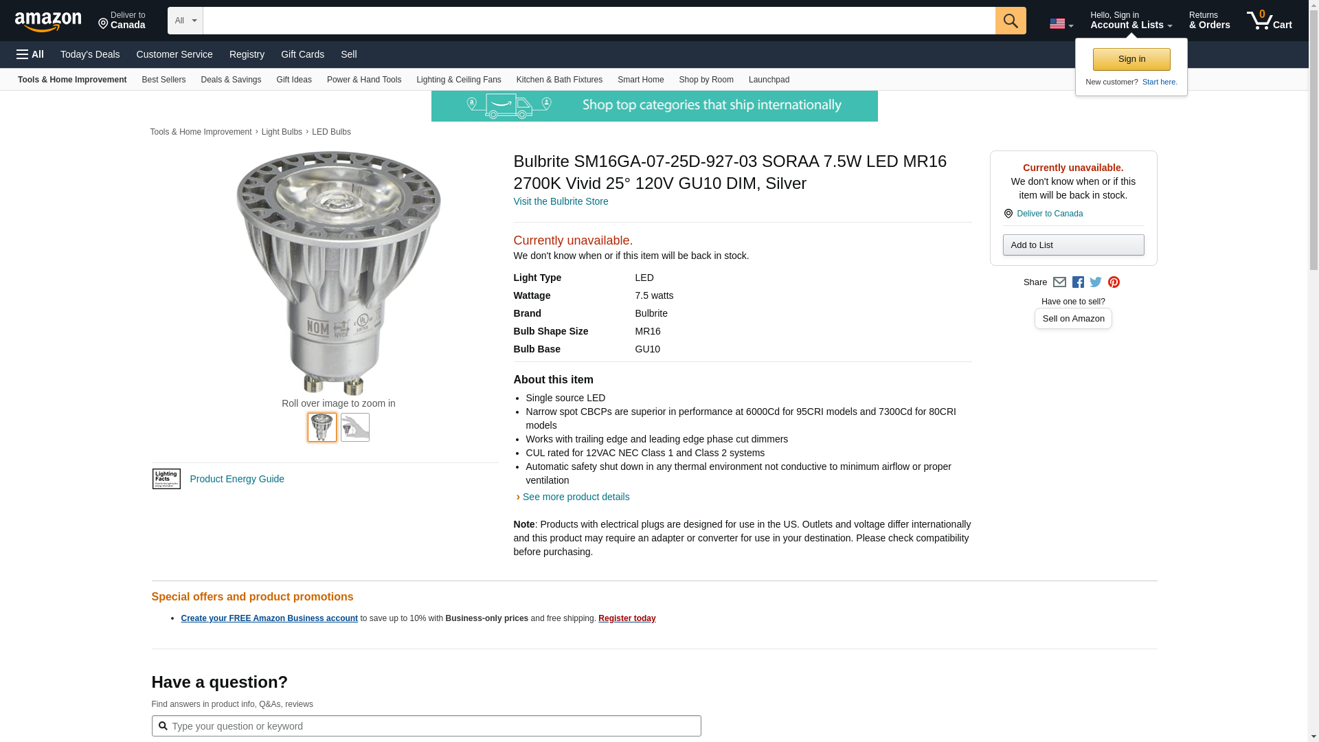 Bulbrite SM16GA-07-25D-927-03 SORAA 7.5W LED MR16 2700K Vivid 25° 120V GU10 DIM, Silver