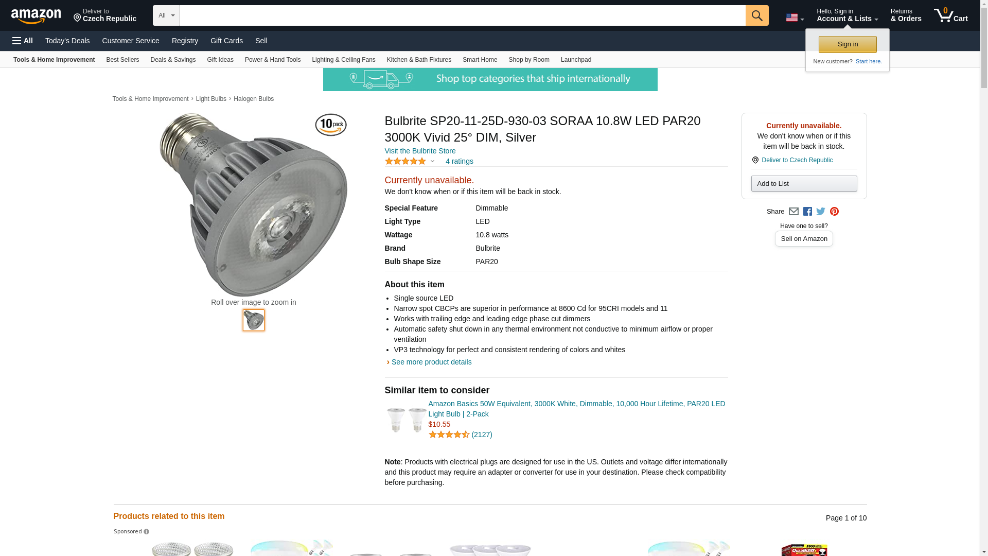Bulbrite SP20-11-25D-930-03 SORAA 10.8W LED PAR20 3000K Vivid 25° DIM, Silver