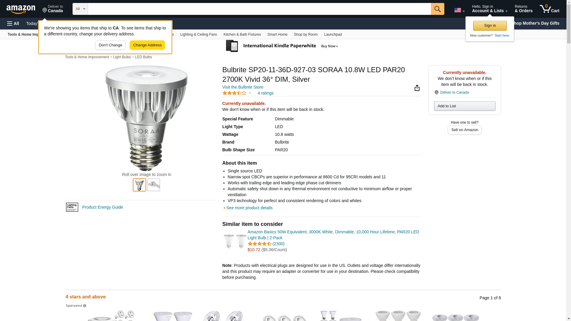 Bulbrite SP20-11-36D-927-03 SORAA 10.8W LED PAR20 2700K Vivid 36° DIM, Silver