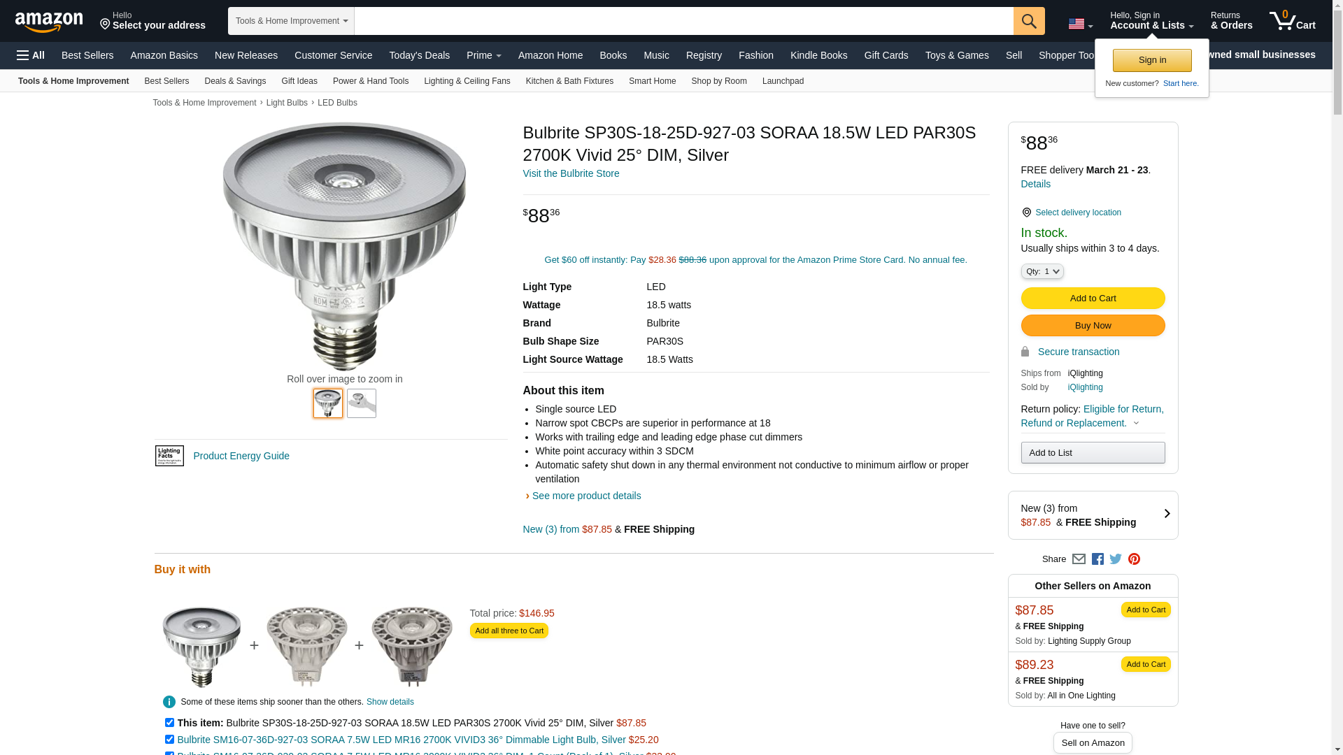 Bulbrite SP30S-18-25D-927-03 SORAA 18.5W LED PAR30S 2700K Vivid 25° Dimmable Light Bulb, Silver