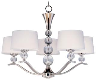 Maxim 12755WTPN Rondo Crystal Glass Ball with White Hardback Fabric Shade Chandelier, 5-Light 300 Total Watts, 21" H x 31" W, Polished Nickel