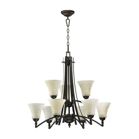 Quorum 6177-9-86 Aspen - Nine Light 2-Tier Chandelier, Oiled Bronze Finish with Linen Glass