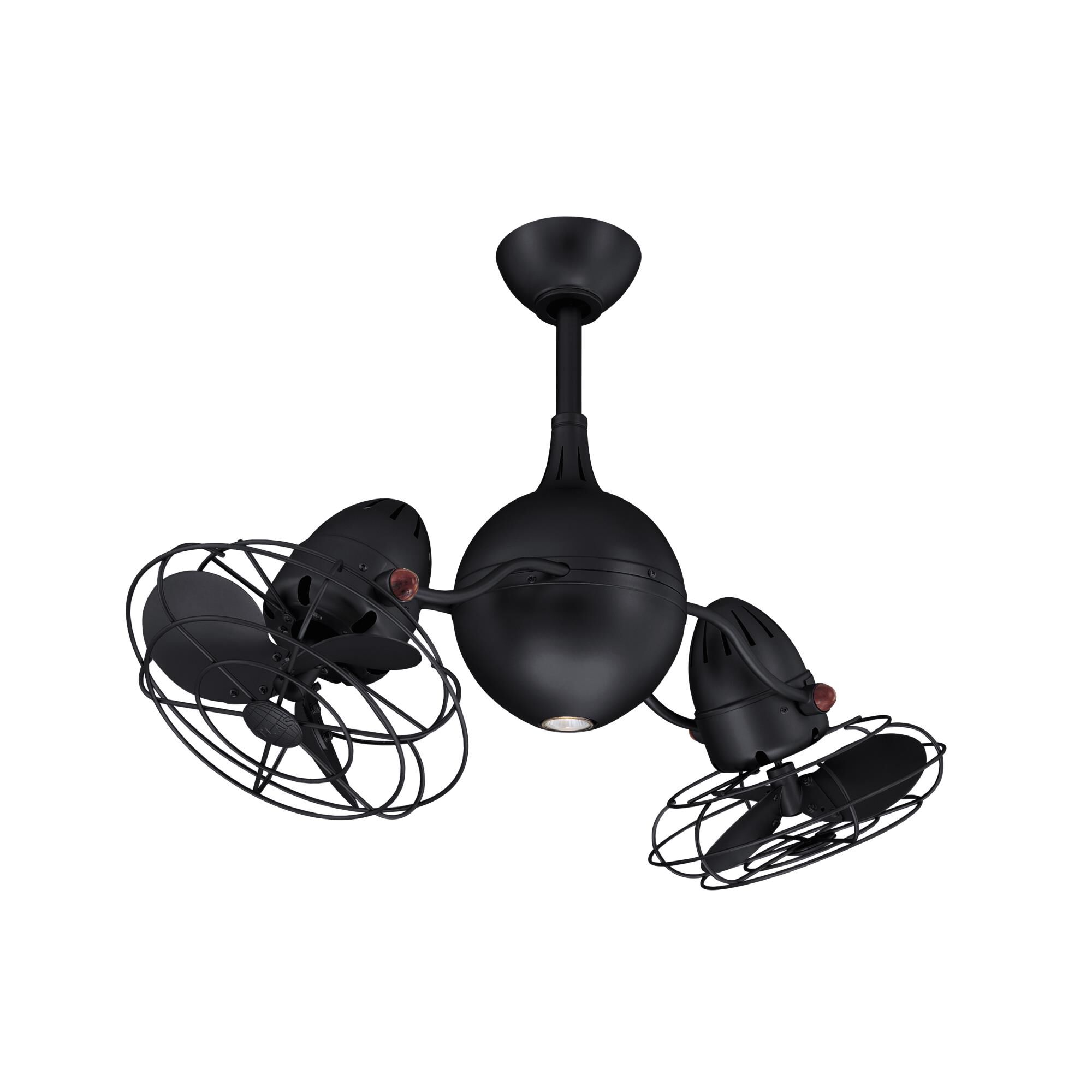 Matthews Fan Company AQ-BK-MTL Acqua 38" Damp-rated Caged Dual Ceiling Fan w/ LED Lights & Remote, Matte Black