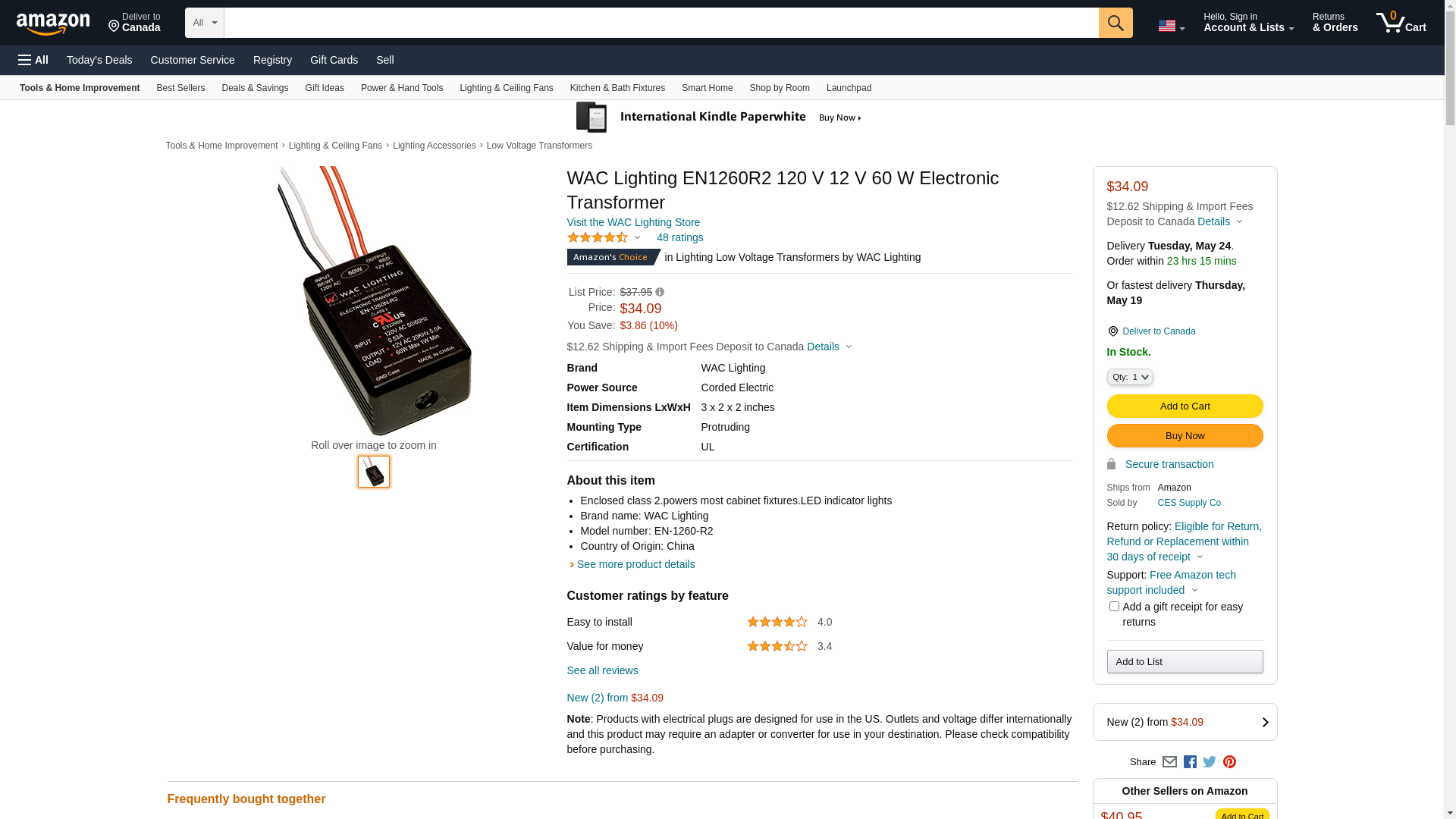 ![]() gordonelectricsupply.com | EN-1260-R2 | 1 | -2 | 1 | 1 @ $40.95 |