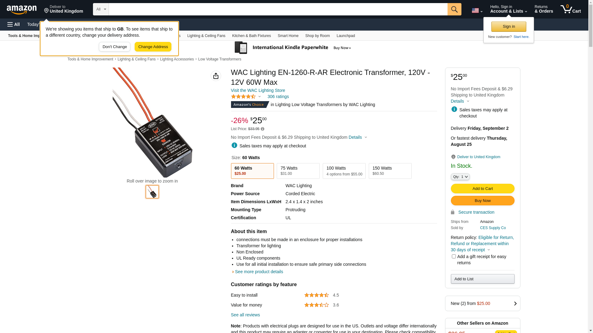 WAC Lighting EN-1260-R-AR Electronic Transformer, 120V - 12V 60W Max (60 Watts, 2-Pack)