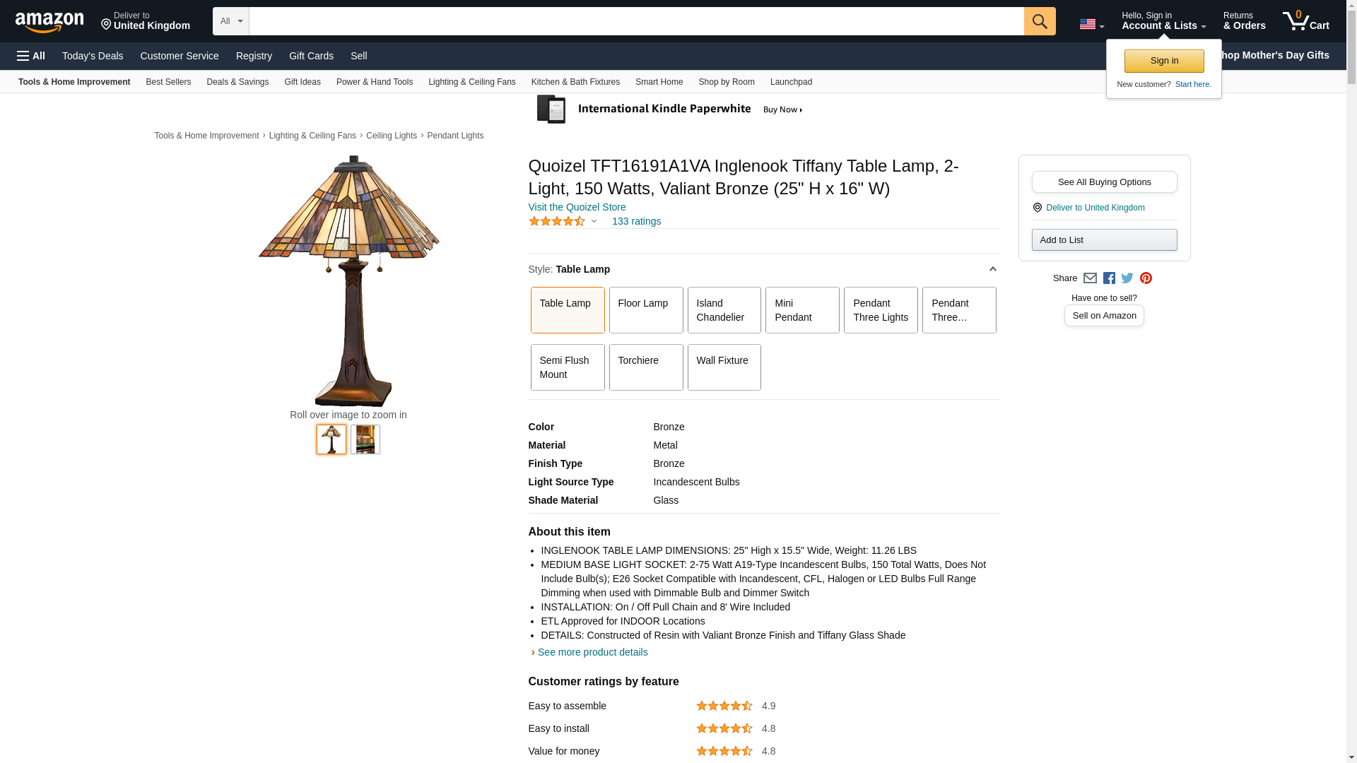 - DETAILS: Constructed of Resin with Valiant Bronze Finish and Tiffany Glass Shade