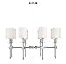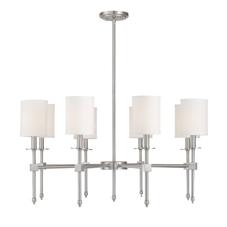This Savoy House Chatham 8-light chandelier showcases an effortlessly, casually elegant look that makes it a perfect choice for illuminating your home. It is finished in satin nickel with white fabric shades to give you a comfortable, useful glow. This versatile chandelier has a bold look that can be used in a wide variety of spaces, including but certainly not limited to dining rooms, living rooms, great rooms, bedrooms, kitchens, foyers, offices and even bathrooms! Its larger size makes it ideal for larger spaces and it can be hung from a sloped ceiling. The satin nickel finish can be matched with nickel hardware or mixed with hardware in other finishes. The clean look of the Chatham is a great fit for farmhouse style, transitional style, classic style and more. When you choose a Savoy House lighting fixture, you can be certain you've selected a piece that will withstand the test of time.