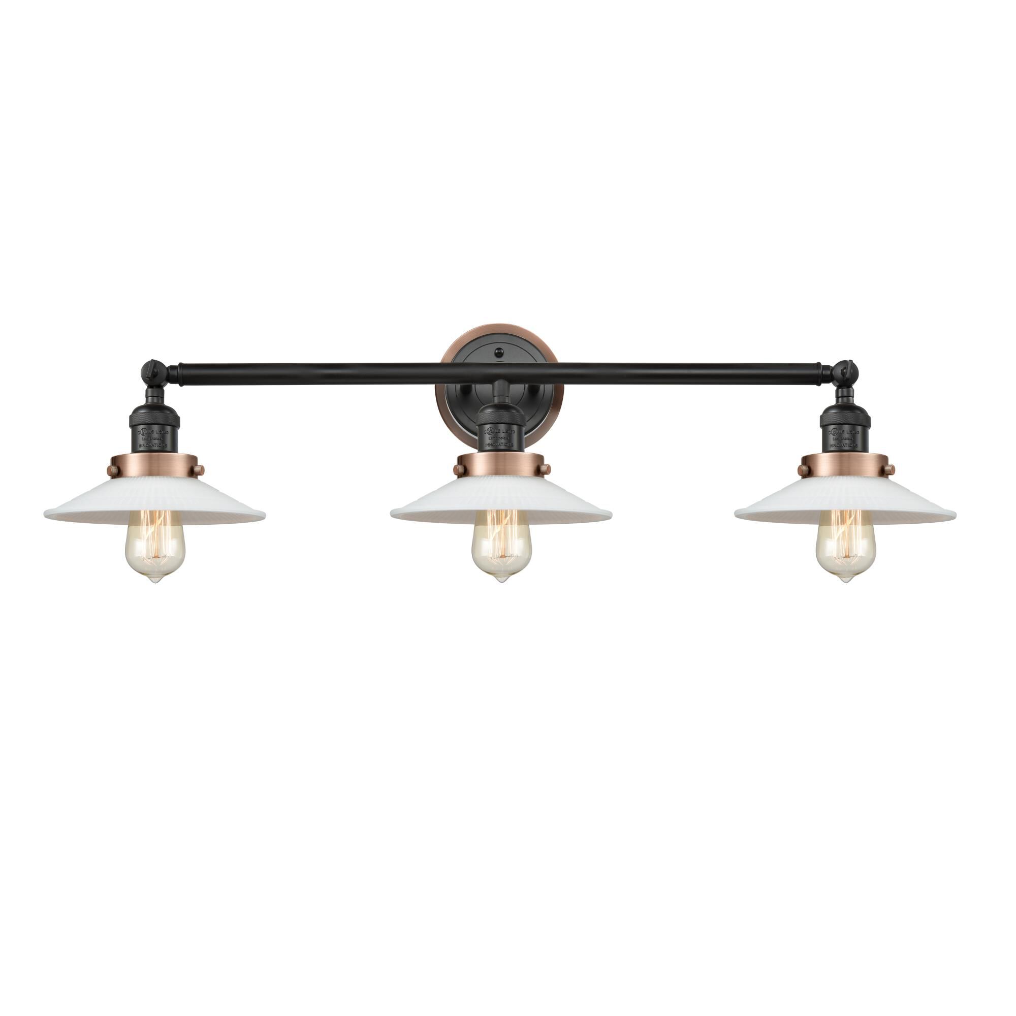 Innovations Lighting 205BP-ACBK-G2 Franklin Restoration Halophane 3 Light 32 1/2 Inch Clear Glass Vanity Light -...