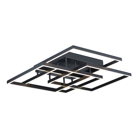ET2 Lighting-E21518-BK-Collection: Traverse, Material: Steel, Finish Color: Black, Width: 31", Height: 6", Length: 31", Hanging Method: Flush, Lamping Type: LED, Number Of Bulbs: 1, Wattage: 112 Watts, Dimmable: No, Moisture Rating: Damp Rated, Desc: Multiple squares are layered in a geometric pattern to form an interesting lighting sculpture. Enclosed behind the white acrylic lens is a high power LED for even and economical illumination. Warranty: 5 YearsColor Temperature: 3000 / Lumens: 7840 / CRI: 80+ / Rated Life: 35000 Hours / Canopy Included: Yes / Canopy Diameter: 15 x 15 x 2. ,-Traverse-112W 1 LED Flush Mount-31 Inches wide by 6 inches high-Black Finish