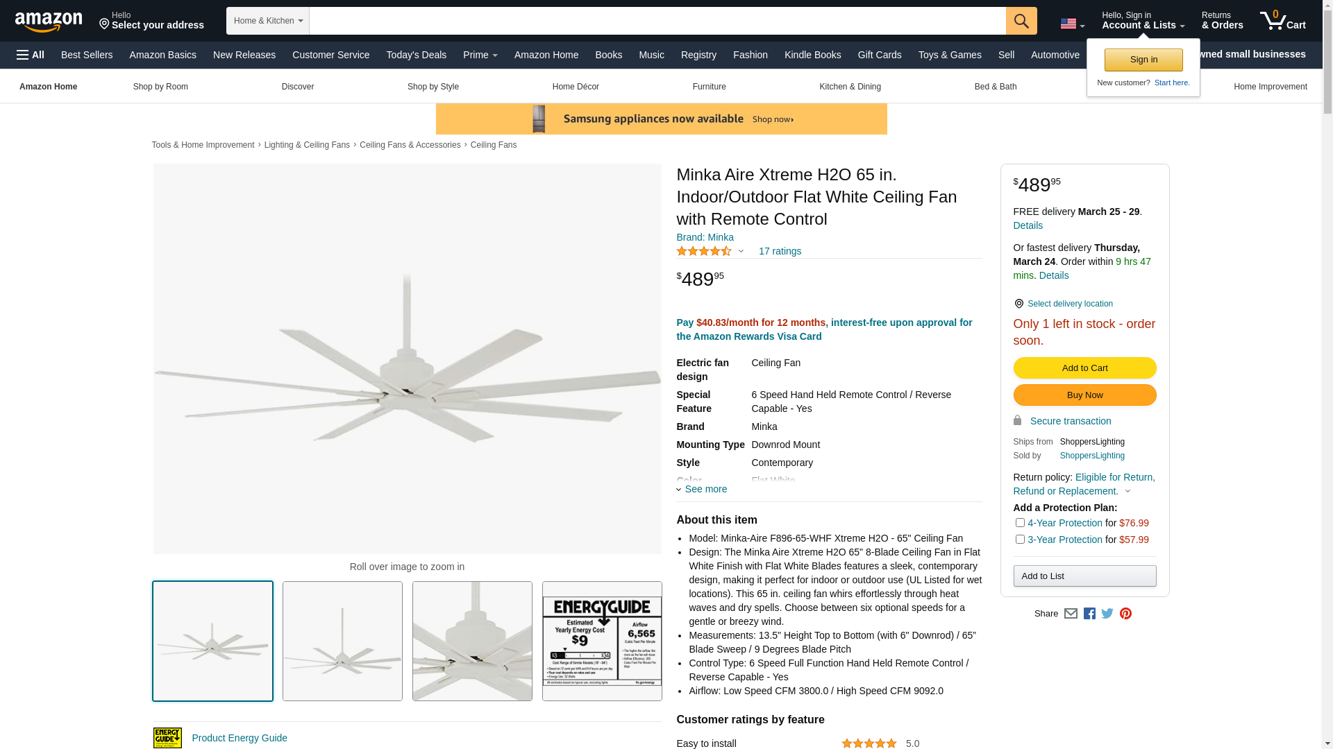 - Model: Minka-Aire F896-65-WHF Xtreme H2O - 65" Ceiling Fan