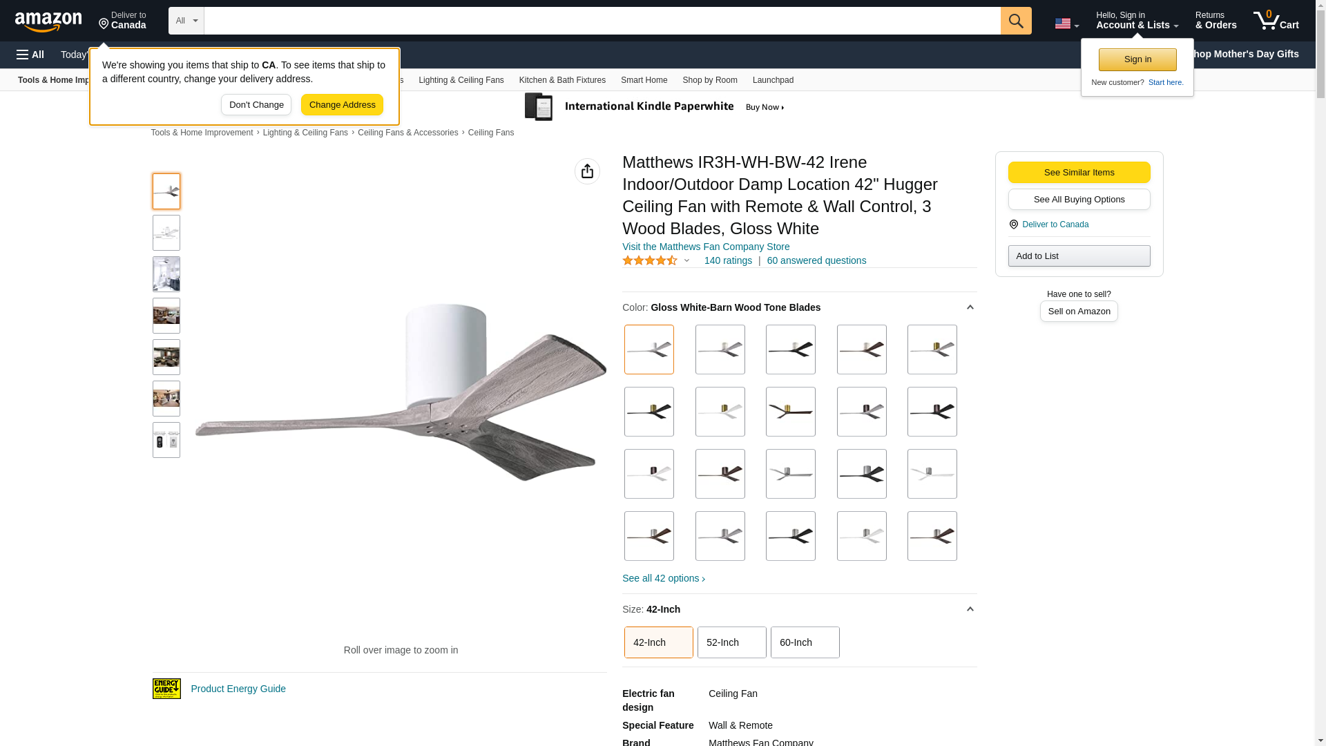 Buy Matthews Fan IR3H-WH-BW-42 42-in 17W Irene-3H Ceiling Fan w/Remote, DC, 6-Speed, 3-Barn Wood Blades, Gloss White on HomElectrical.com. Take advantage of FREE SHIPPING.
