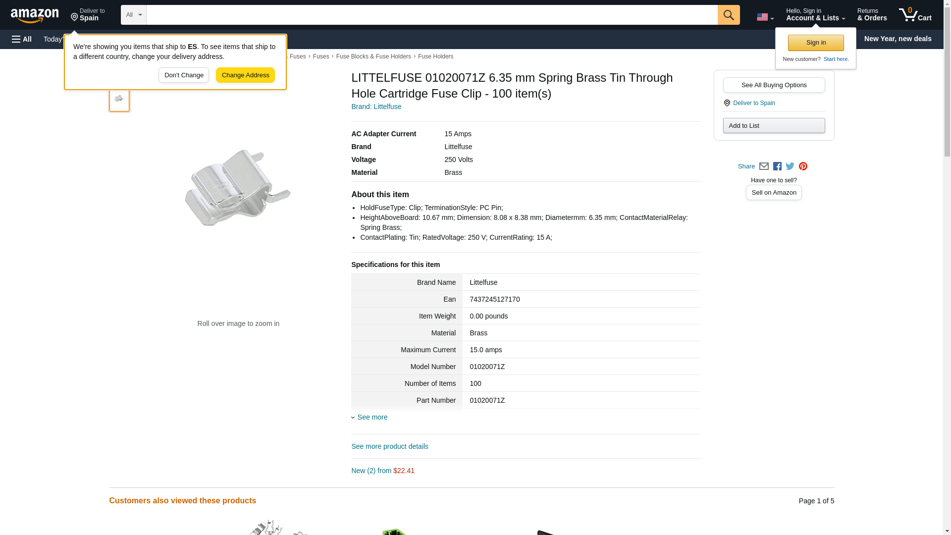 LITTELFUSE 01020071Z 6.35 mm Spring Brass Tin Through Hole Cartridge Fuse Clip - 100 item(s)