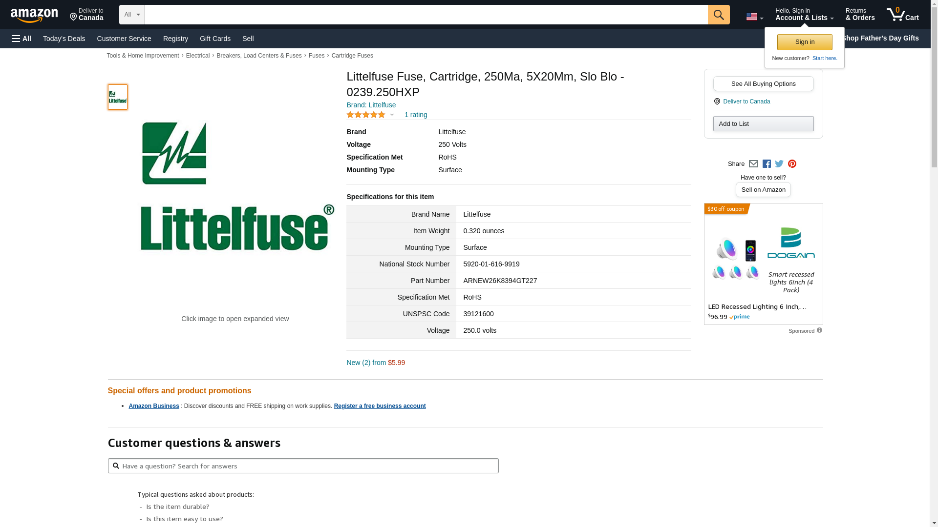| Lighting Supply | LITTELFUSE-0239.250HXP | 1 | 100 | 1 @ $207.00 | |
