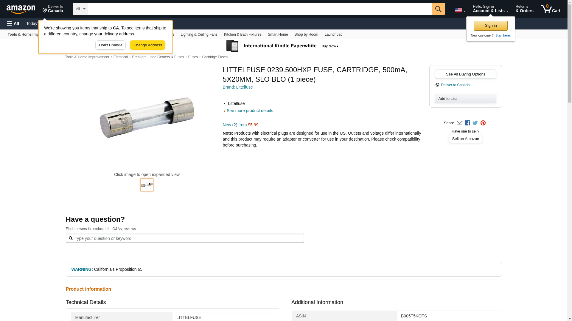 | Feature | LITTELFUSE 0239.500HXP FUSE, CARTRIDGE, 500mA, 5X20MM, SLO BLO |