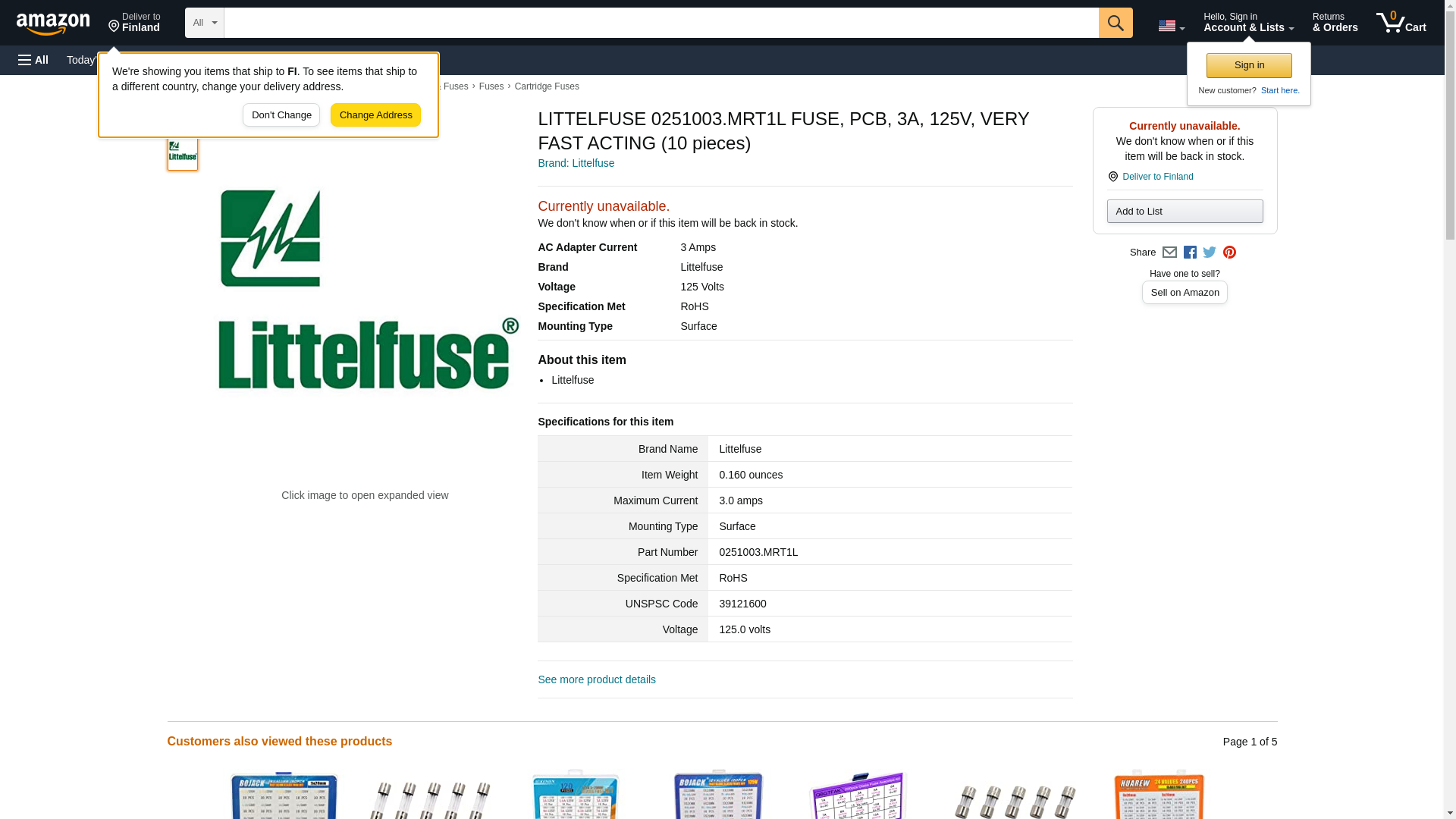 Littelfuse 0251003.MRT1L Fuse, Pcb, 3A, 125V, Very Fast Acting