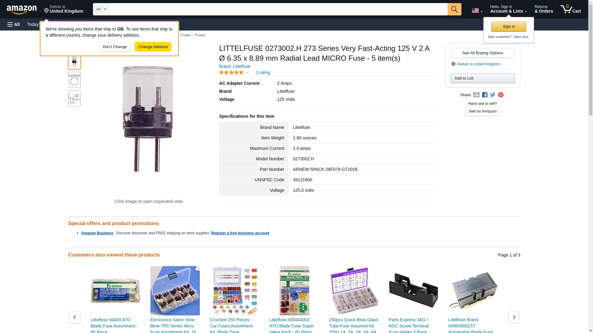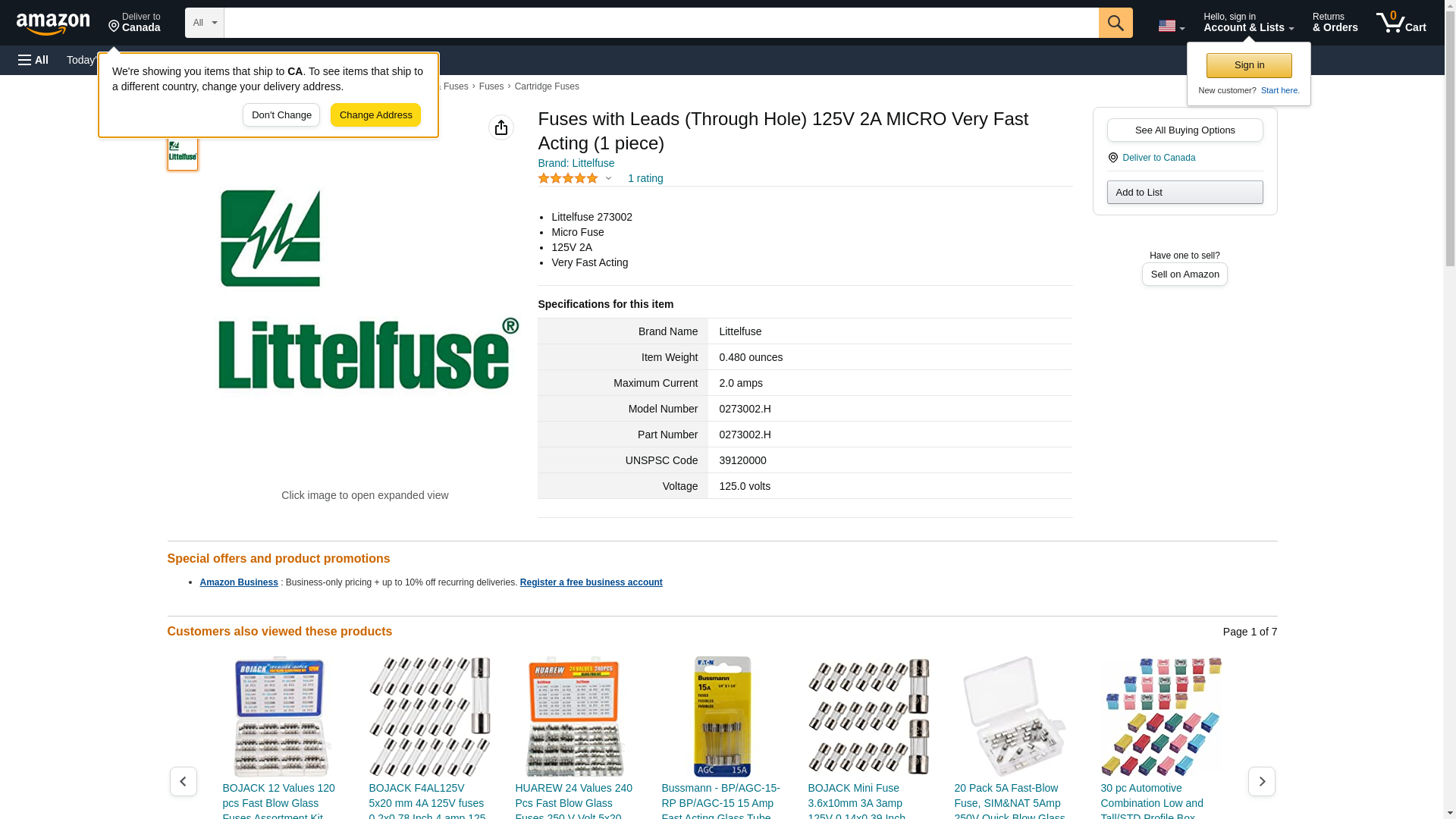 LITTELFUSE 0273002.H 273 Series Very Fast-Acting 125 V 2 A Ø 6.35 x 8.89 mm Radial Lead MICRO Fuse - 5 item(s)