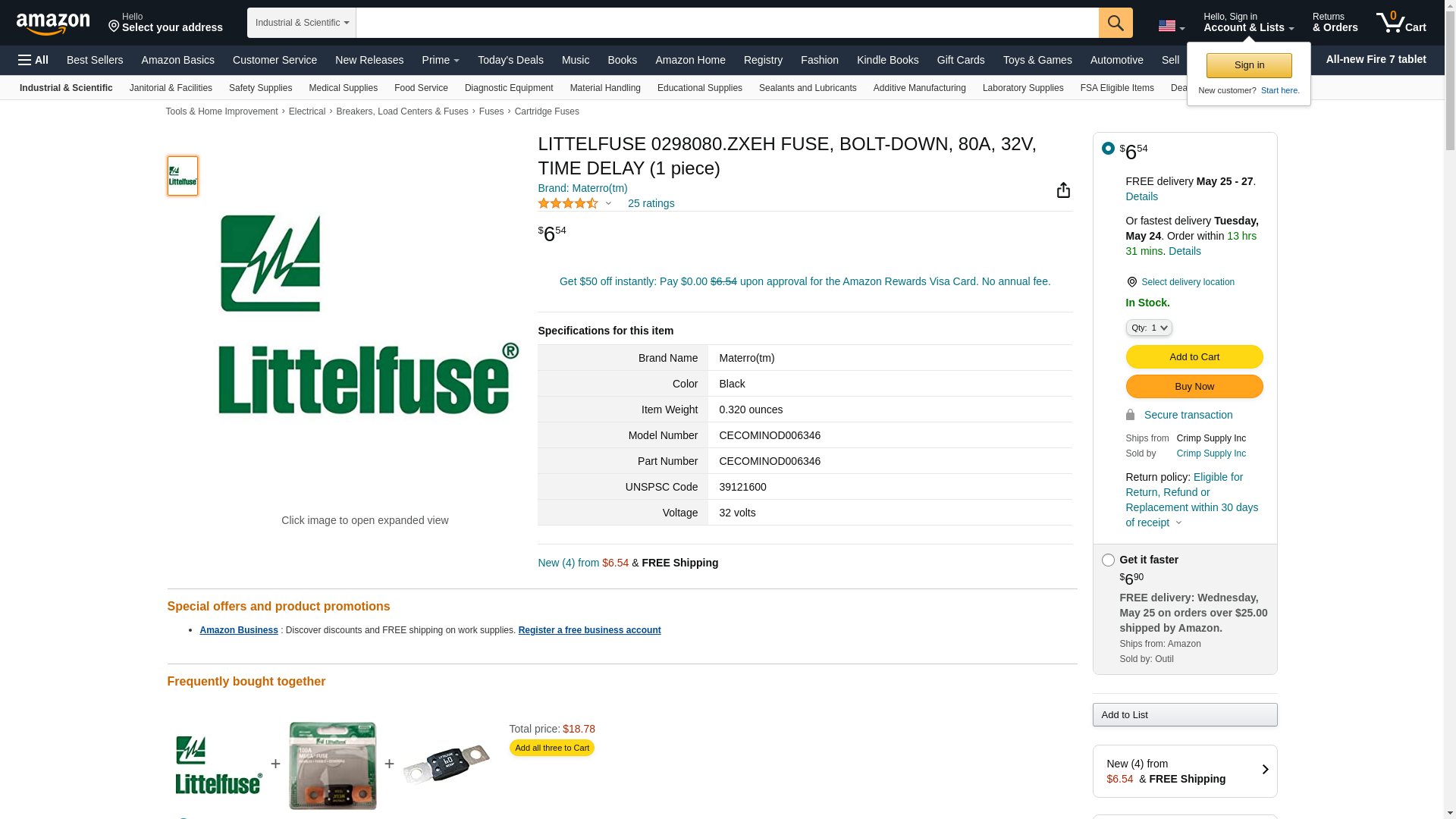 | Lighting Supply | LITTELFUSE-0298080.ZXEH | 1 | 500 | 1 @ $3025.00 | |