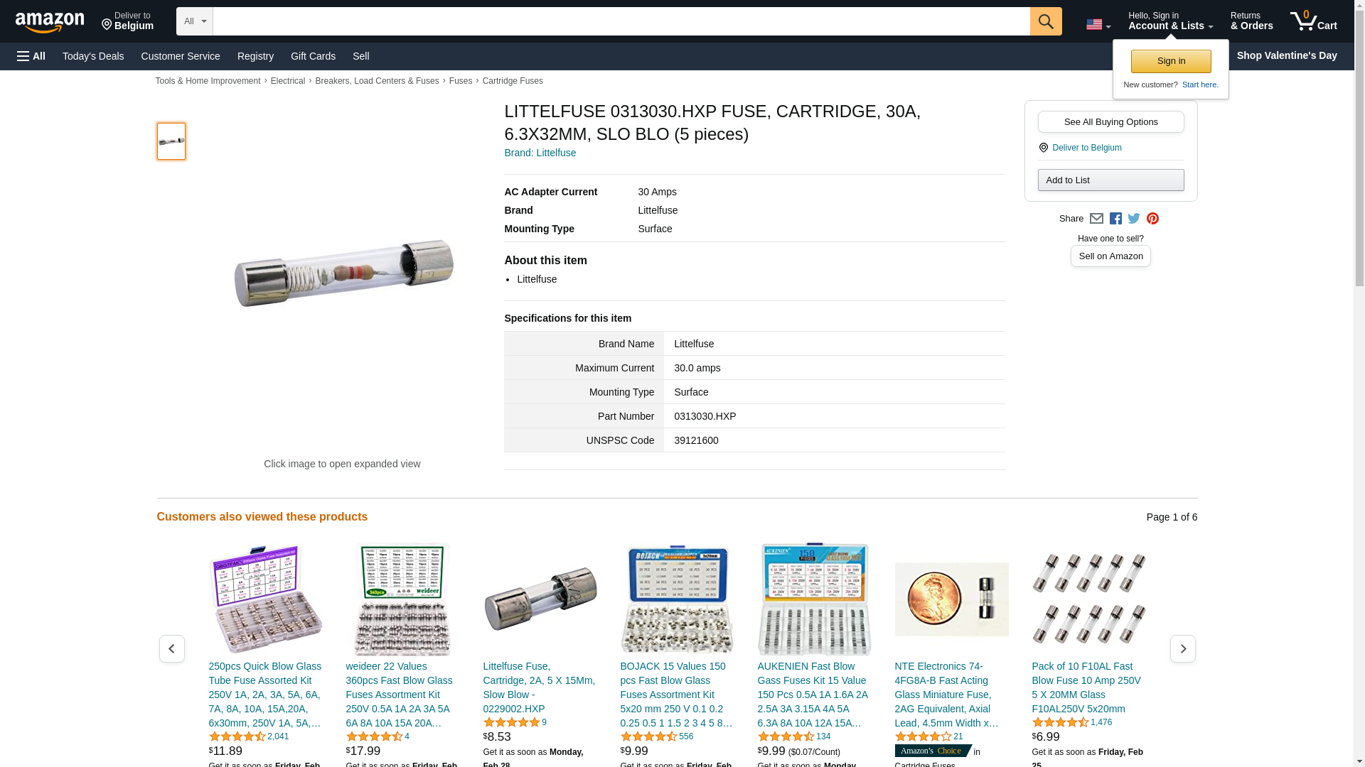 | Feature | LITTELFUSE 0313030.HXP FUSE, CARTRIDGE, 30A, 6.3X32MM, SLO BLO |