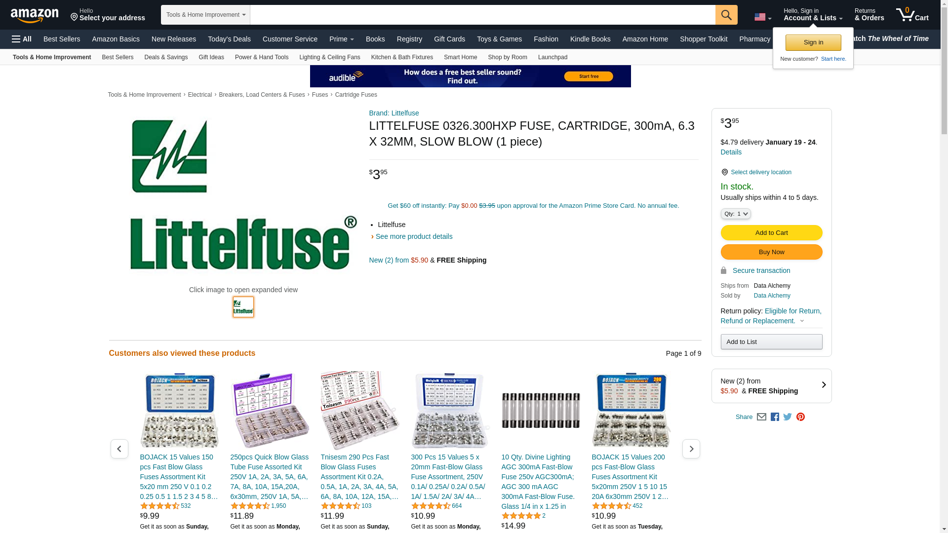 | Lighting Supply | LITTELFUSE-0326.300HXP | 1 | 100 | 1 @ $388.00 | |