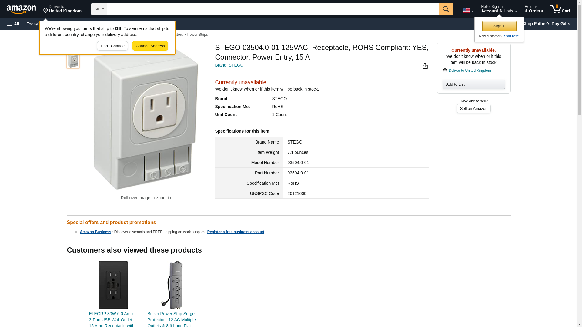 STEGO 03504.0-01 Power Entry, Receptacle, 15 A, 125VAC, Connector, ROHS Compliant: YES