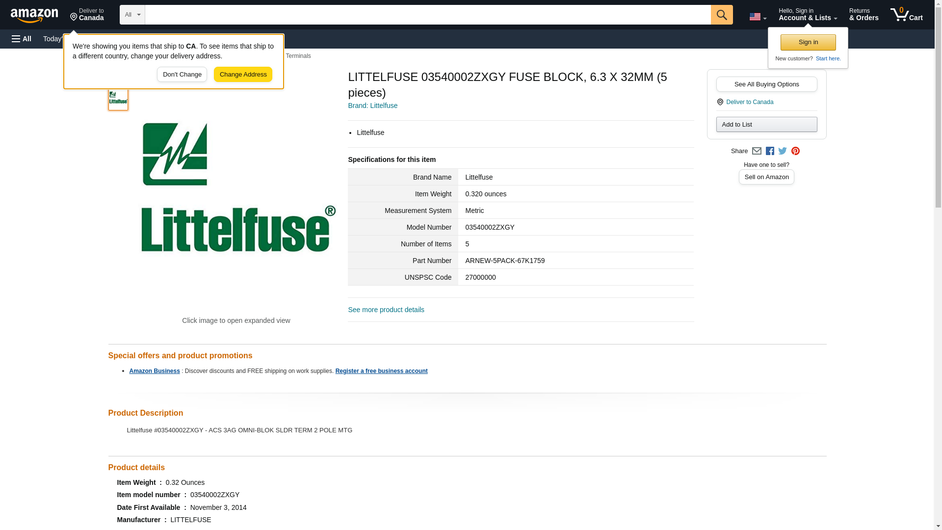 Littelfuse Fuse Block, 6.3 X 32Mm - 03540002ZXGY