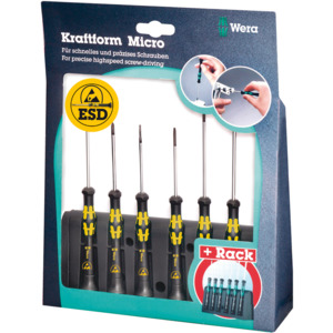 Wera Tools 030170 ESD Safe Slotted/Phillips Precision Screwdriver Set + Rack