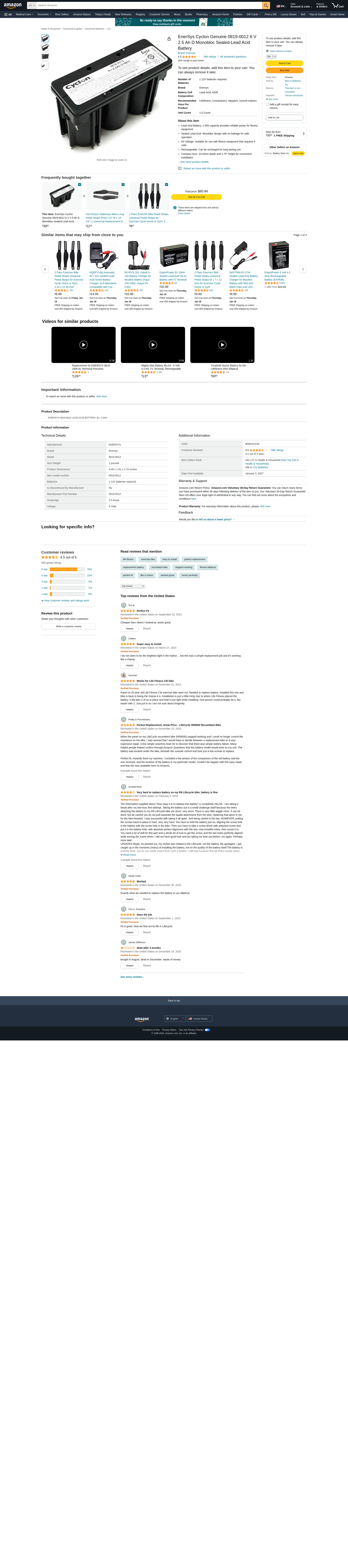 EnerSys 2.5Ah Sealed Lead-Acid Battery for Hawker 0819-0012