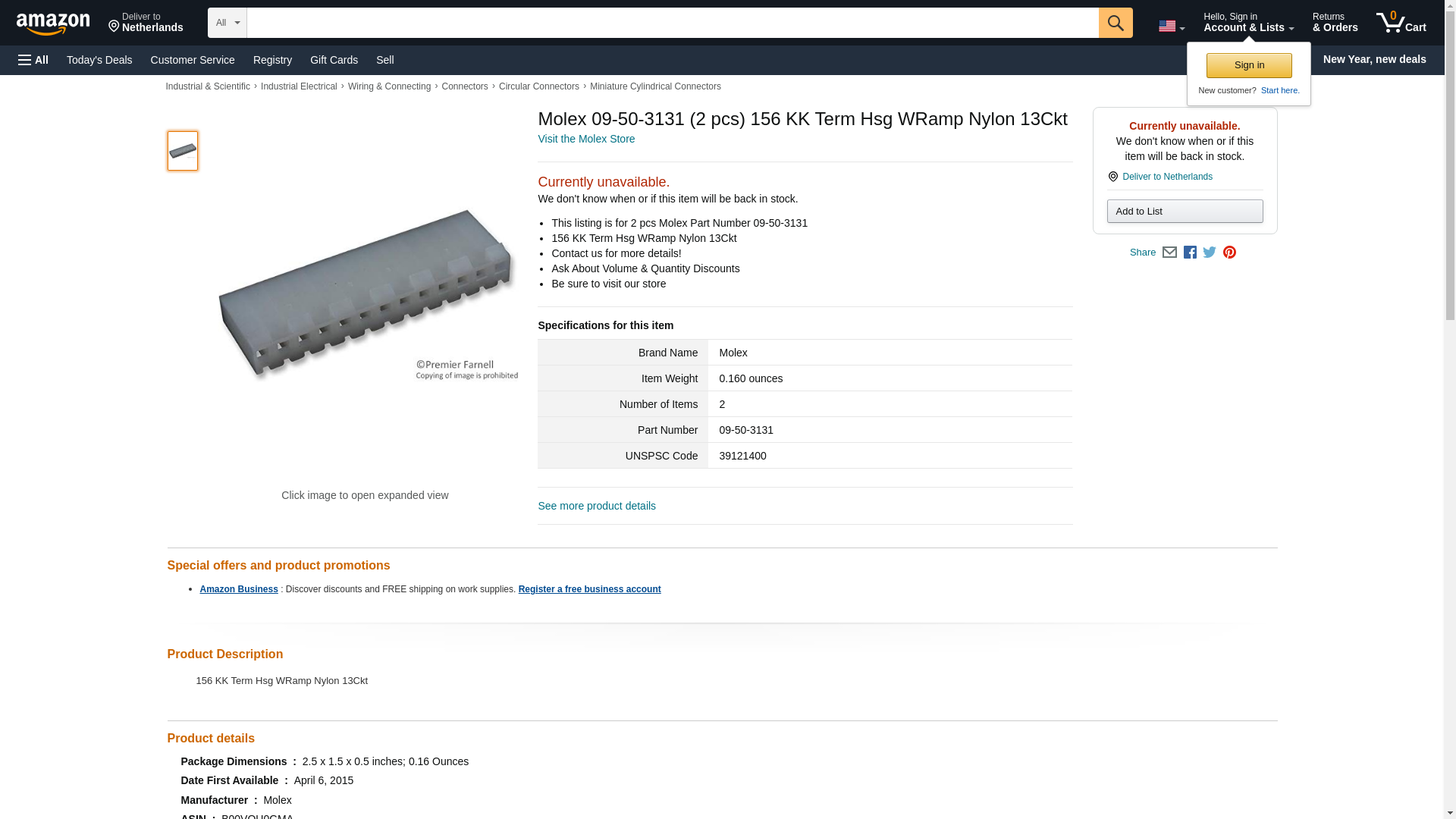 | Feature | This listing is for 2 pcs Molex Part Number 09-50-3131 |