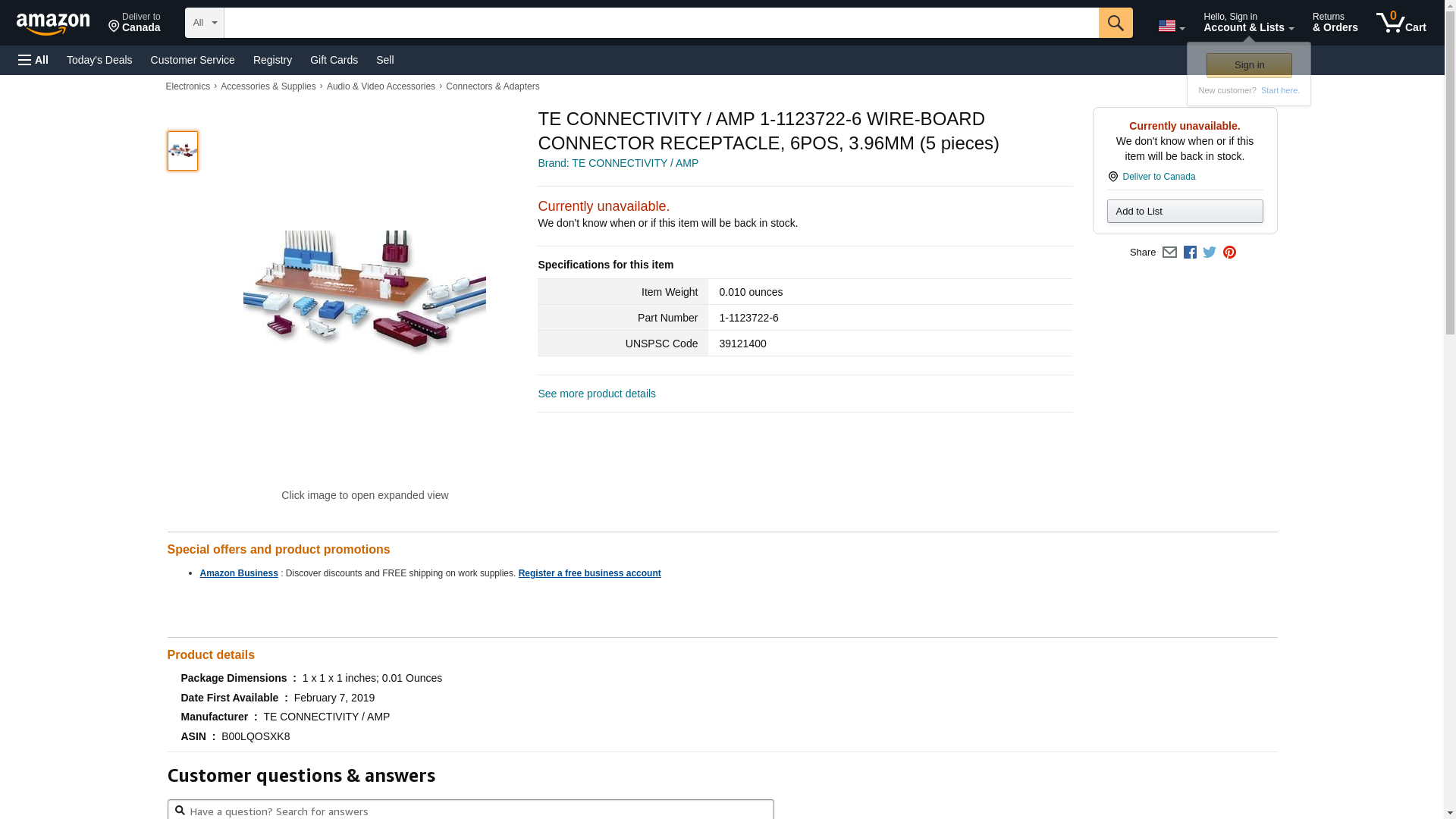 | Waldom | TE CONNECTIVITY 1-1123722-6 | 1 | 1 | ||