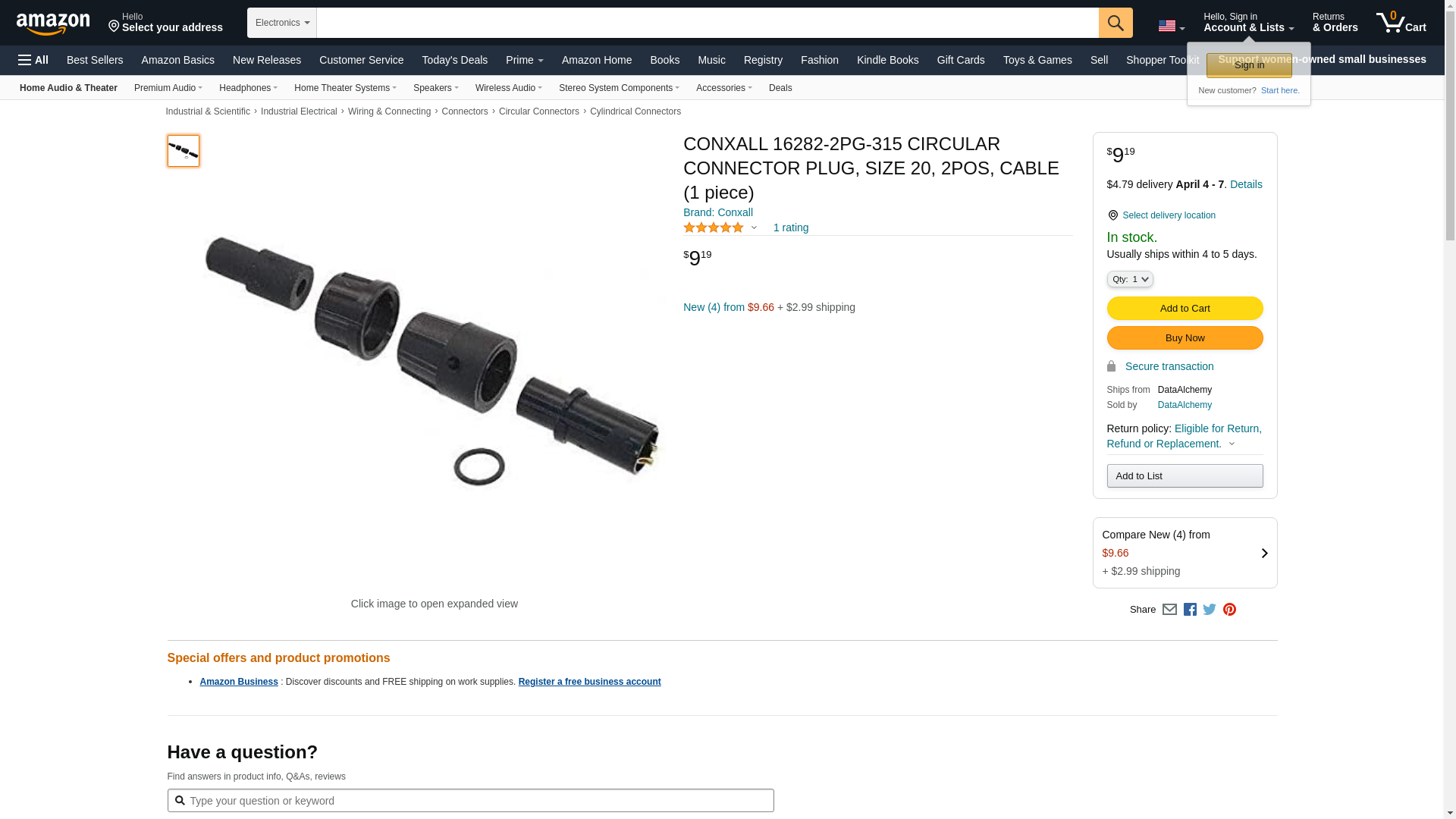 | Feature | CONXALL - 16282-2PG-315 - CIRCULAR CONNECTOR PLUG, SIZE 20, 2POS, CABLE |