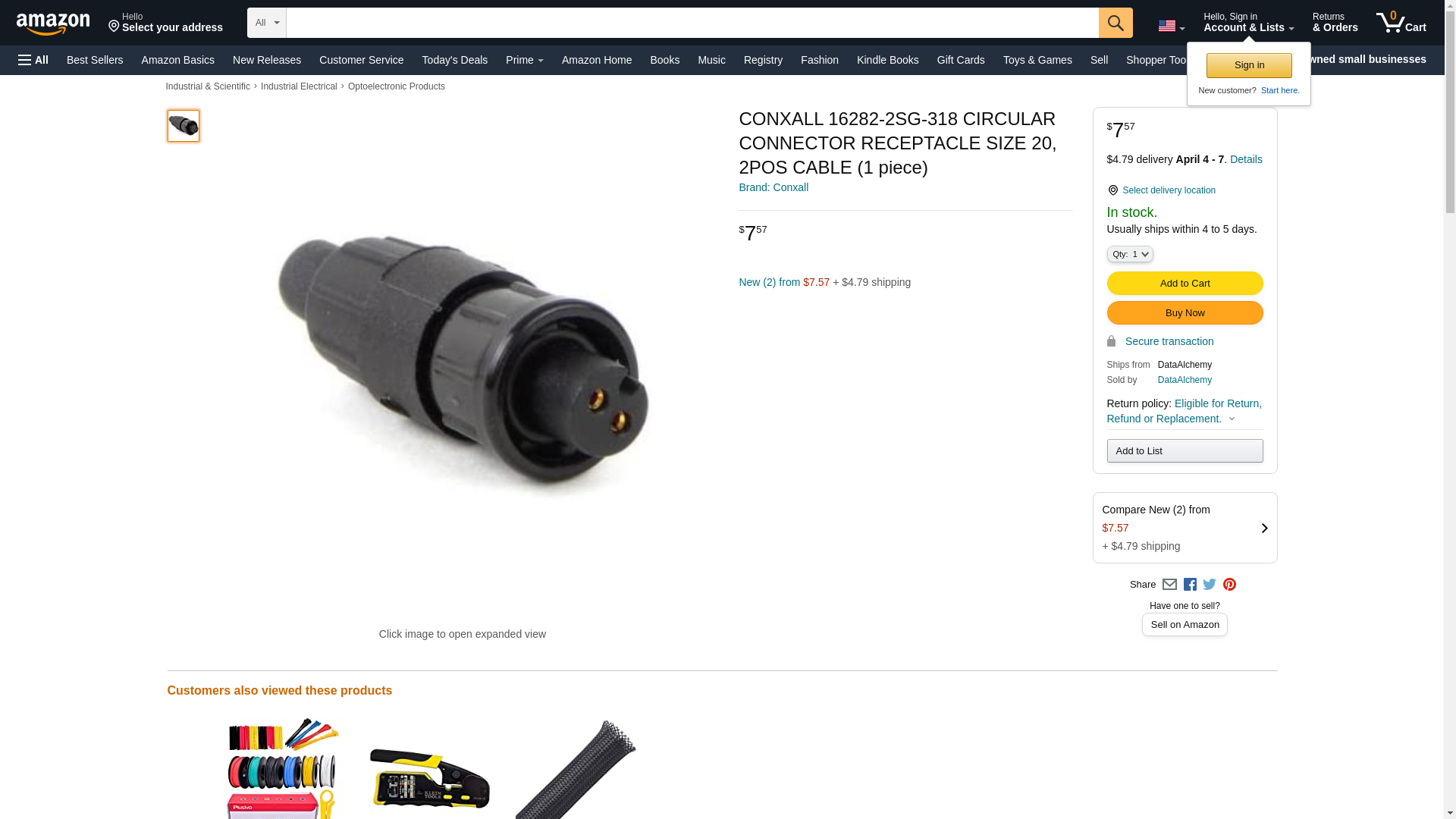 CONXALL 16282-2SG-318 CIRCULAR CONNECTOR RECEPTACLE SIZE 20, 2POS CABLE (100 pieces)