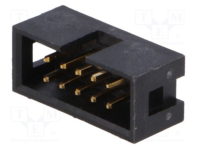 | Feature | Manufacturer: TE Connectivity Product Category: Headers & Wire Housings RoHS: Product Type: Headers Type: Shrouded Series: Pitch: 2.54 mm x 2.54 mm Number of Positions / Contacts: 10 Number of Rows: 2 Contact Gender: Pin (Male) Contact Plating: Gold Housing Material: Thermoplastic Termination Style: Through Hole Mounting Style: - Mounting Angle: Vertical Contact Material: Brass |