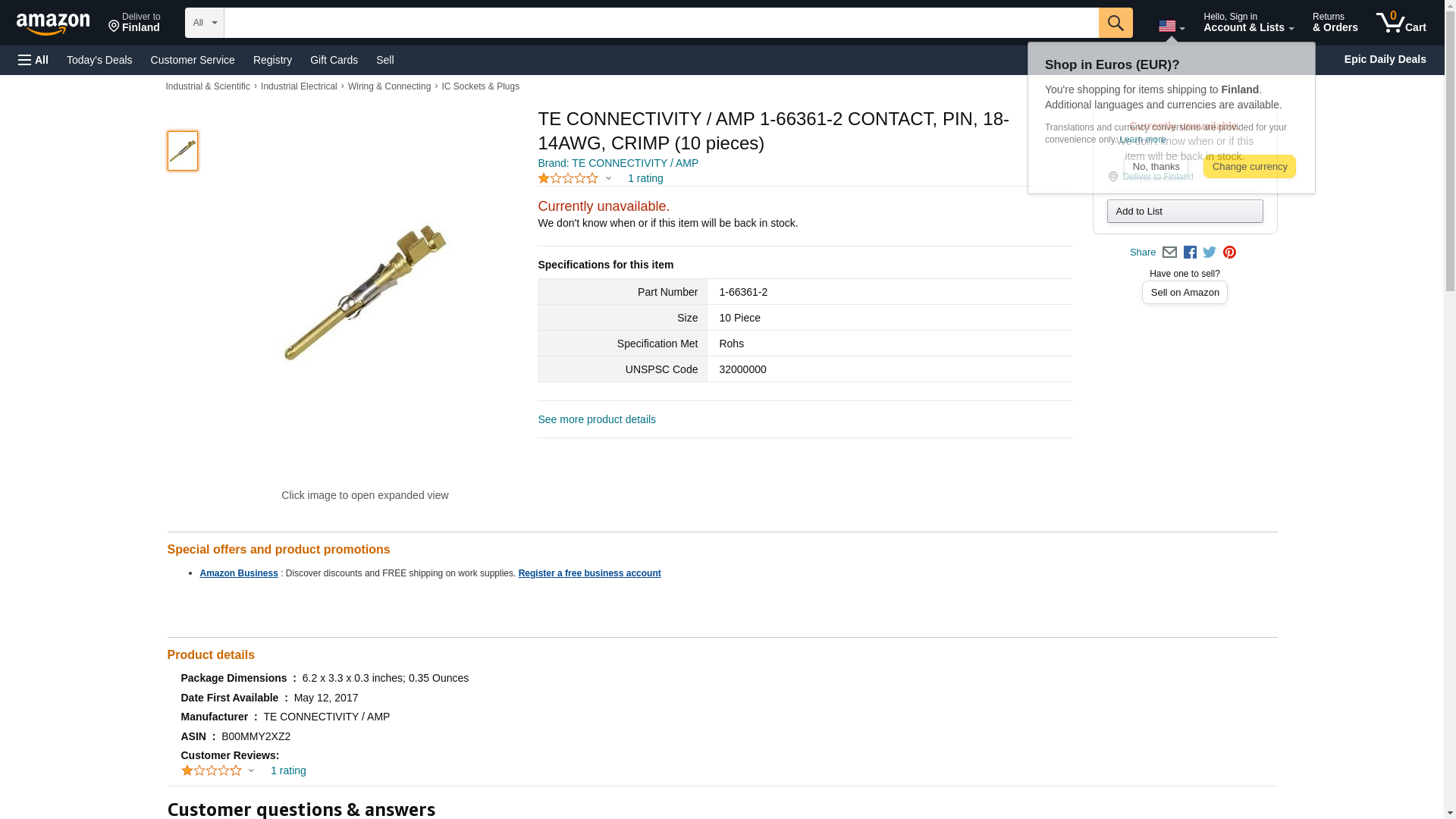 TE Connectivity/AMP Brand 1-66361-2 Connector Contact