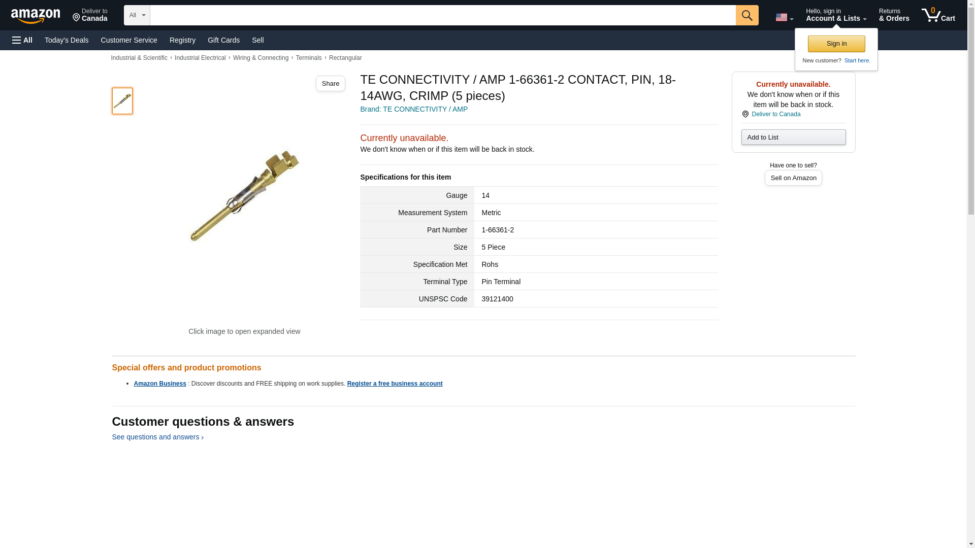 Te Connectivity / Amp 1-66361-2 Contact, Pin, 18-14Awg, Crimp