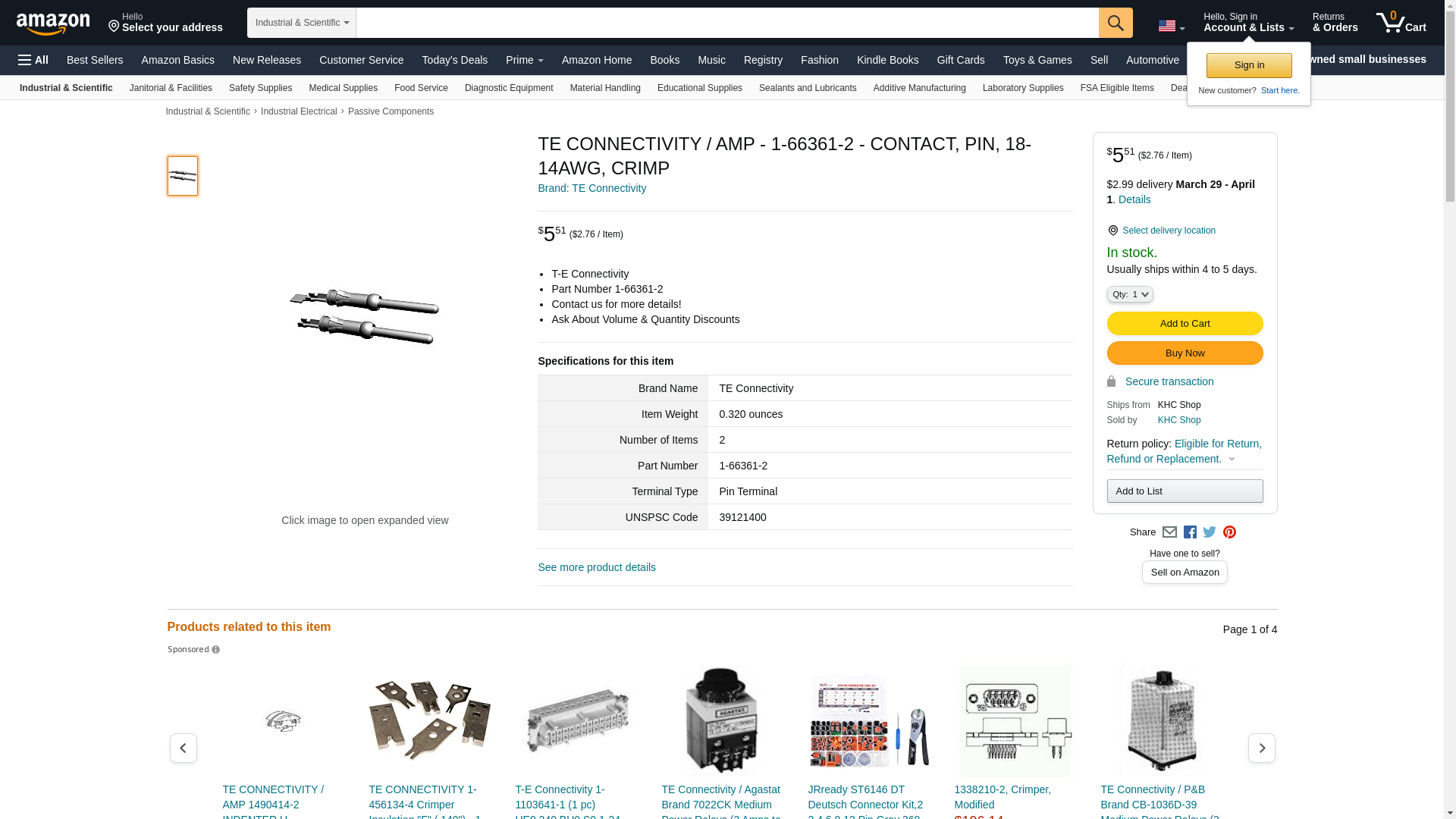 1-66361-2, Contact PIN 16 Size Crimp ST Cable Mount 14-18AWG Carton/Loose (100 Items)