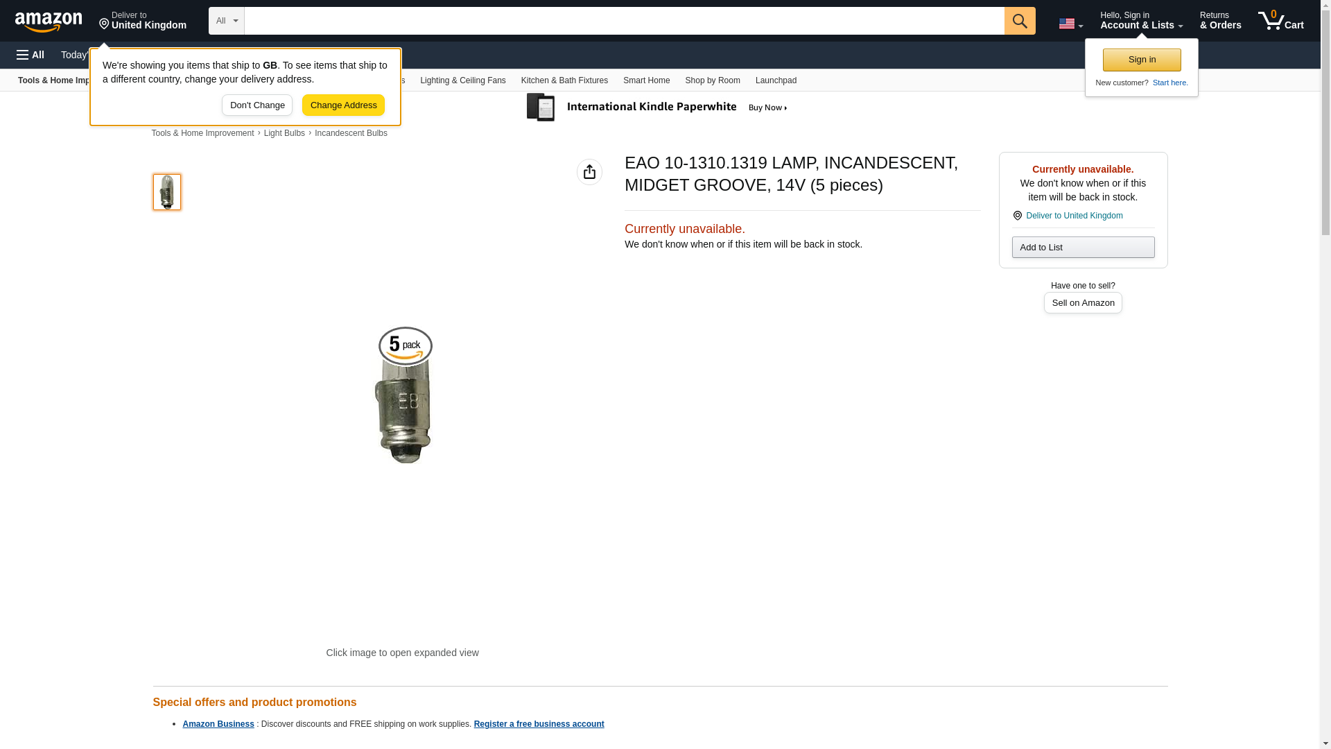 Eao Lamp, Incandescent, Midget Groove, 14V - 10-1310.1319