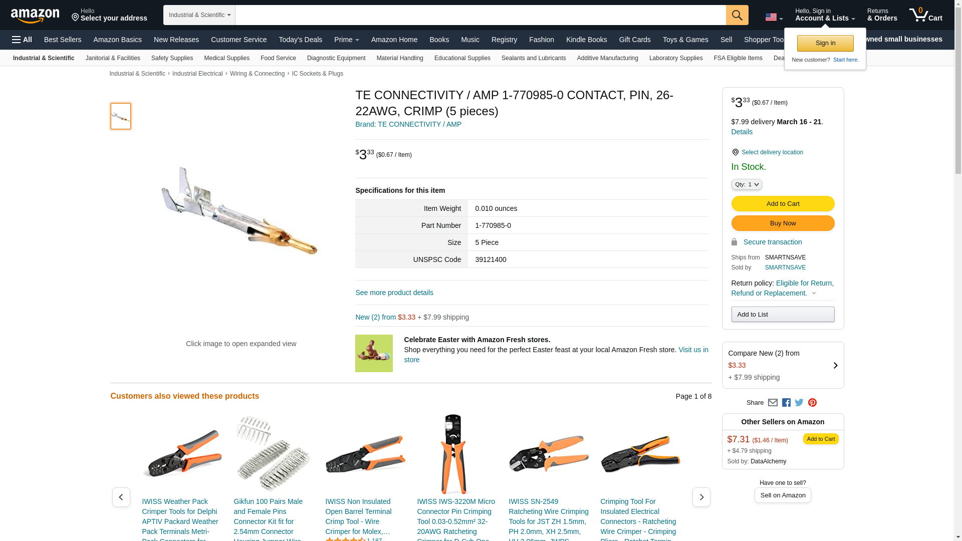 TE CONNECTIVITY / AMP 1-770985-0 CONTACT, PIN, 26-22AWG, CRIMP (50 pieces)