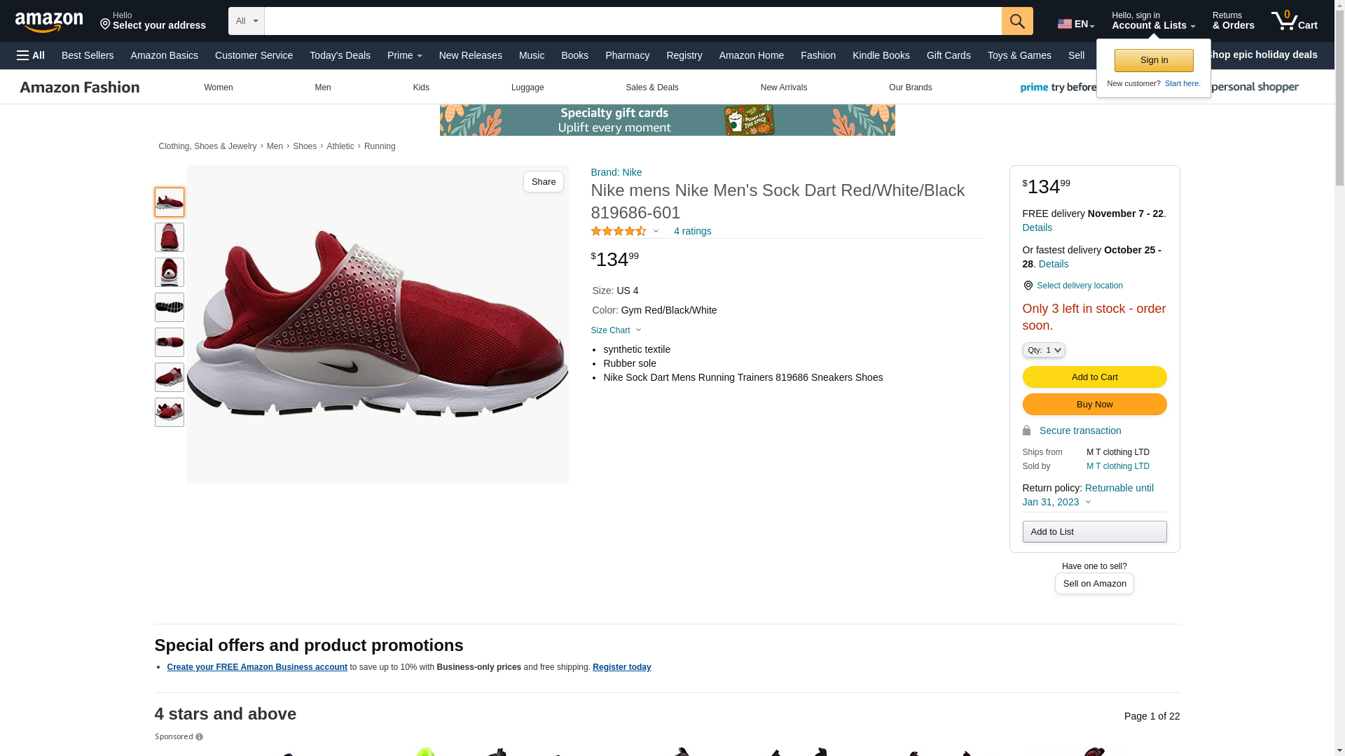 NIKE Sock Dart Mens Running Trainers 819686 Sneakers Shoes (US 4, Gym red Black White 601)