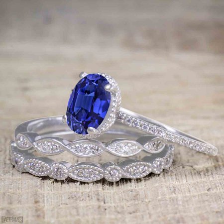 <ul> <li>The wedding set, engagement ring or trio ring set is made with Real Sapphire and white diamond and on Real Gold</li> <li>The affordable cheap engagement ring wedding set feautring the bohemian antique artdeco design with sapphire and diamond is on sale</li> <li>100% Satisfaction Guaranteed. Each order comes with 30 days Refund policy</li> </ul>
