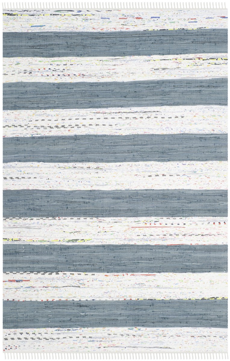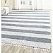 SAFAVIEH Montauk Collection Area Rug - 10' x 14', Ivory & Grey, Handmade Stripe Fringe Cotton, Ideal for High Traffic Areas in Living Room, Bedroom (MTK720A)