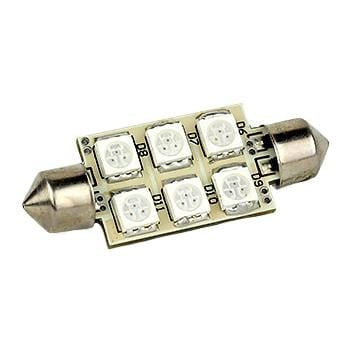 Single-Sided 6 LED Festoon This High Power 6-LED Festoon bulb has a built in Buck Regulator making it the most robust light on the market today. Available in multiple lighting colors with red being a great choice for navigation stations or general nighttime boating. High Powered 42mm (1.65") Wide 120° Viewing Angle Super Bright Up to 50,000 Hours 10V-30VDC Equivalent to 10W incandescent