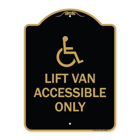 SignMission Designer Series Sign - Lift Van Accessible Only (with Updated Isa Symbol) | Black & Gold 18" X 24" Heavy-Gauge Aluminum Architectural Sign | Protect Your Business | Made in The USA
