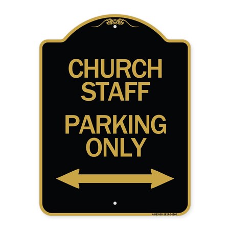 Church Staff Parking Only With Bidirectional Arrow, Black & Gold Aluminum Architectural Sign