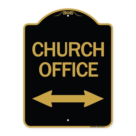 Church Parking With Bidirectional Arrow, Black & Gold Aluminum Architectural Sign