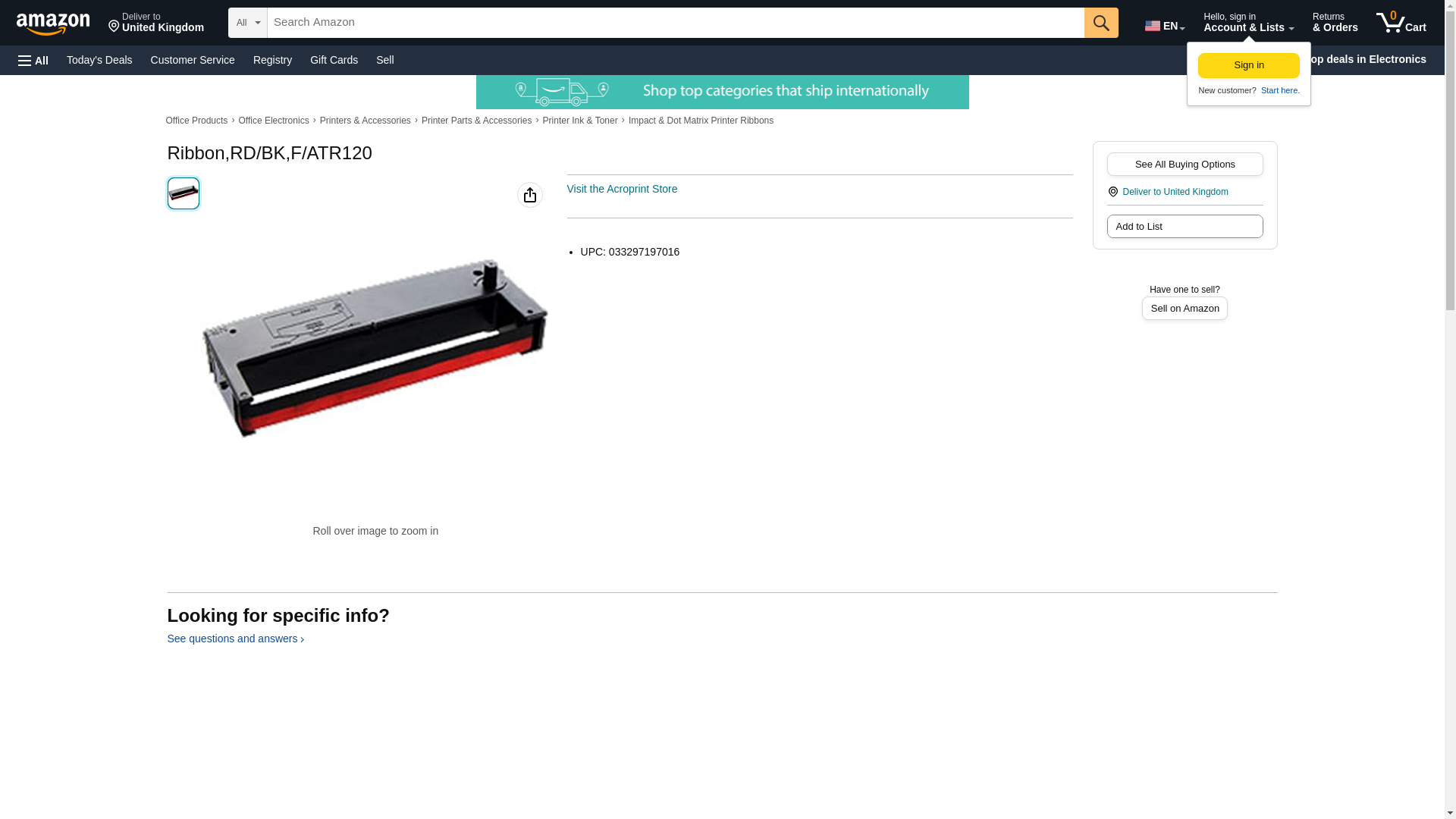 - Ribbon Type: N/A. Unit of Measure : Each.