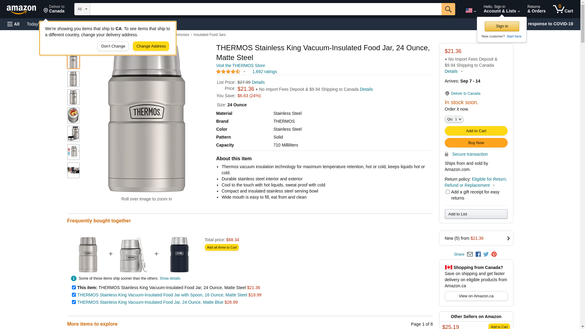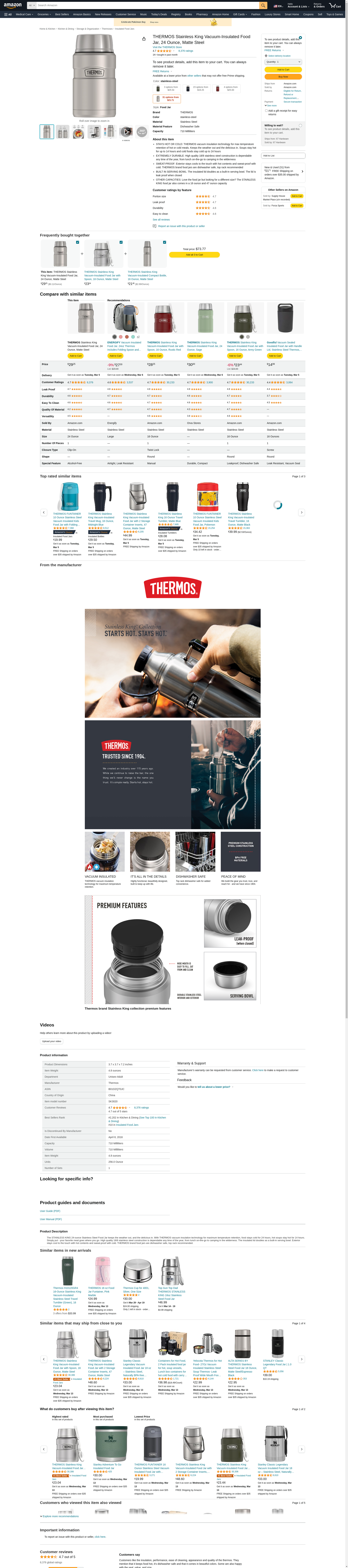 THERMOS Stainless King Vacuum-Insulated Food Jar, 24 Ounce, Matte Steel