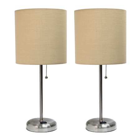Limelights LC2001-TAN-2PK Stick Charging Outlet Fabric Shade 2 Pack Table Lamp Set, Brushed Steel/Tan, 2 Count