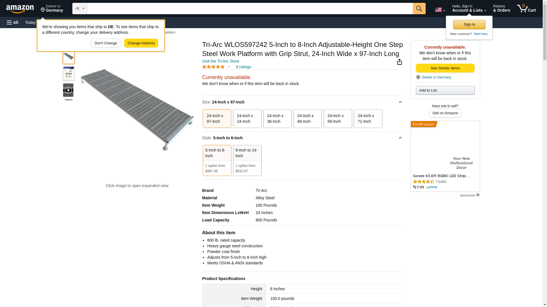 Tri-Arc WLOS597242 5-Inch to 8-Inch Adjustable-Height One Step Steel Work Platform with Grip Strut, 24-Inch Wide x 97-Inch Long