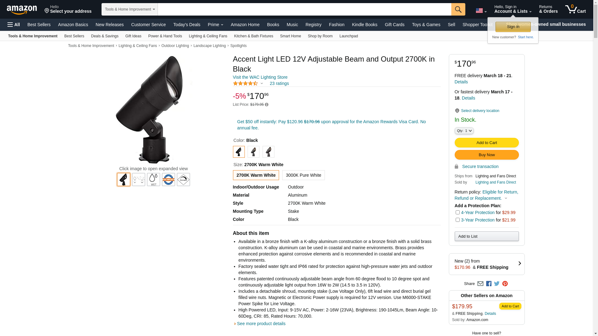 WAC Landscape Lighting, LED 12V Medium Size Accent Light with Adjustable Beam Angle and Integral Brightness Control 50-1300 Lumens 2700K Warm Built-in LED in Black